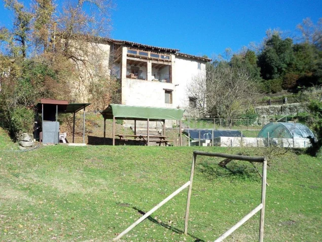 La Pradella es una masía típica catalana, suelo de roble antiguo irregular, dividida en dos plantas, 1ª planta: cocina con barbacoa interior, comedor, terraza con vistas al bosque, 2 habitaciones (una con baño) y un baño completo.
