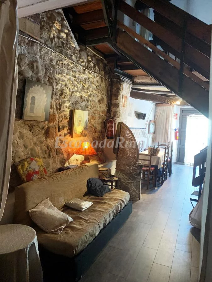 Al entrar por la puerta principal, nos encontramos con el gran salón-comedor con chimenea y a la izquierda barbacoa, cocina y dos baños.