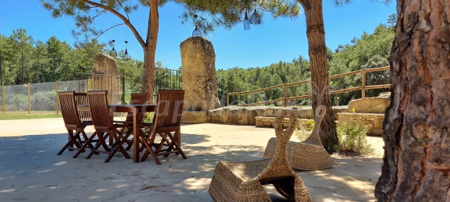 Este antiguo molino de 1888, catalogado y protegido, se alza discretamente en el corazón del Solsonès, rodeado de bosques, prados y un pequeño arroyo que atraviesa el entorno. Un espacio donde la naturaleza, el silencio y la arquitectura dialogan en perfecta armonía, acompañados por la banda sonora de los pájaros y los sonidos del entorno natural.