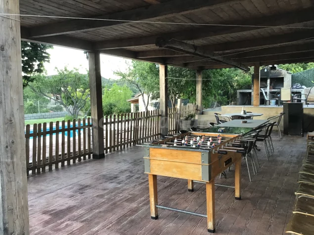 La casa consta de un amplio salón con chimenea, ocho dormitorios amplios, seis baños y uno de ellos con sauna y terraza solarium.