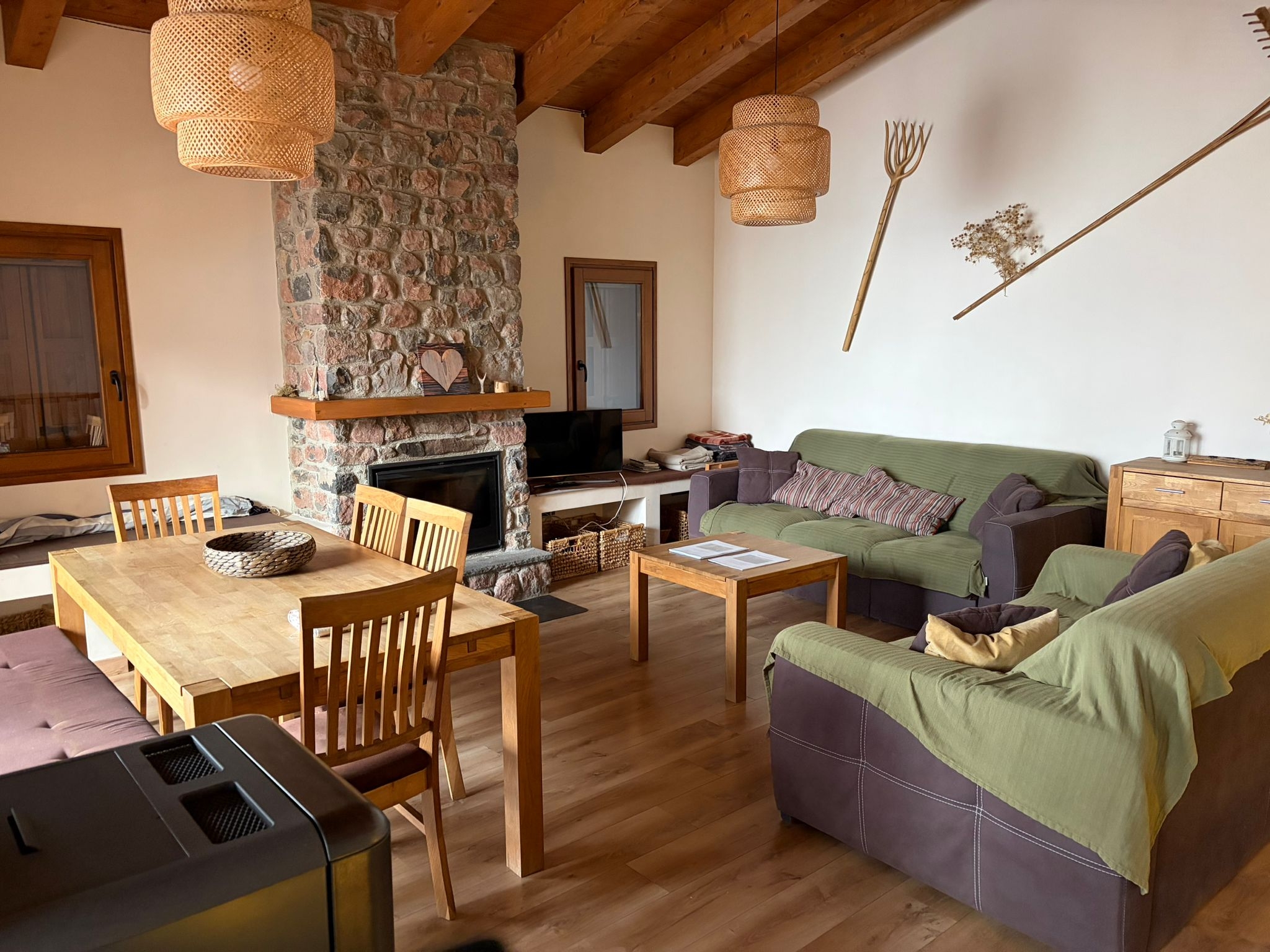 The house is super cozy, spacious, and fully equipped with everything you need. The fireplace and heating system make it perfect for winter, and the kitchen is incredibly complete. There’s also everything needed for a barbecue and a small outdoor table to enjoy the surroundings when the weather allows.